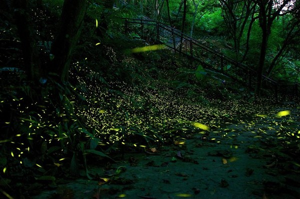 山谷深處也會到處有細小的螢光緩緩飄著,望向山谷看著螢光在樹葉中穿梭時會覺得宮崎駿動畫中的那些空靈而神聖的森林真實存在。