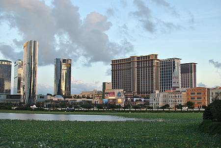 教堂下的荷花池,眼前的大飯店是新濠天地。很多情侶在這邊親親我我。